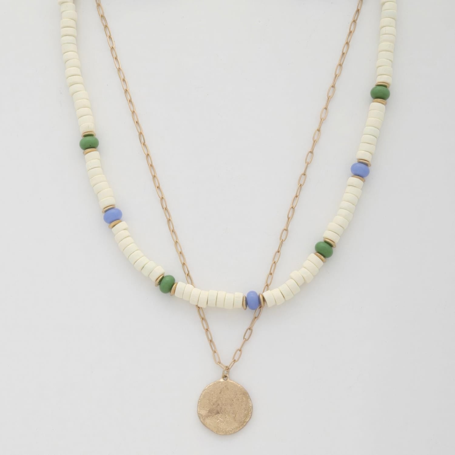 Coin Wood Bead Layered Necklace