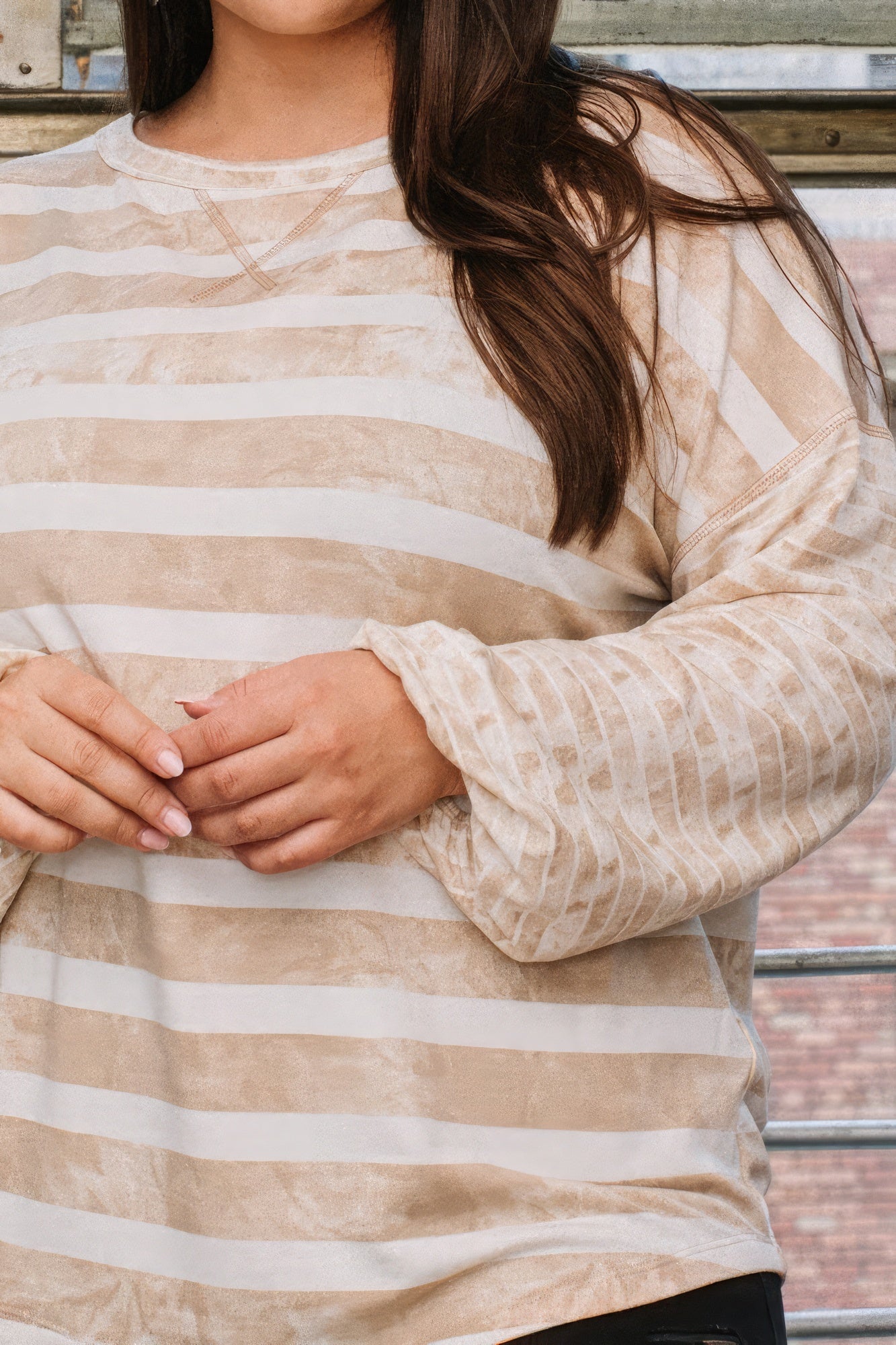 Add the Stripe Printed French Terry Top in Dusty Pink to your cart now and experience the perfect fusion of fashion and comfort!