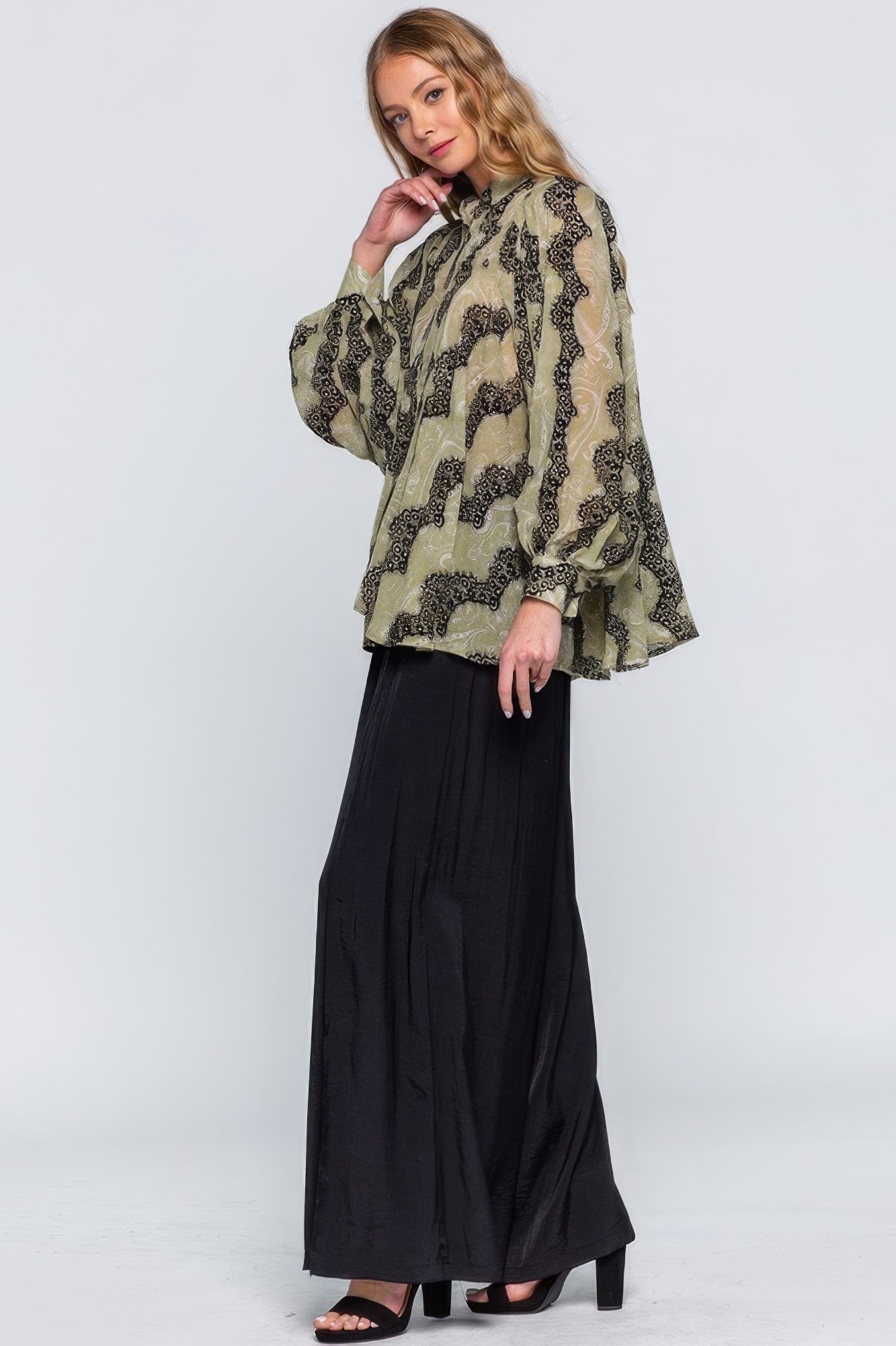 Our shirt stands out with its exquisite lace detailing, elegant bishop sleeves, and flattering overfitting style. Whether you're attending a formal event or a casual outing, this shirt adds a touch of sophistication to any ensemble.